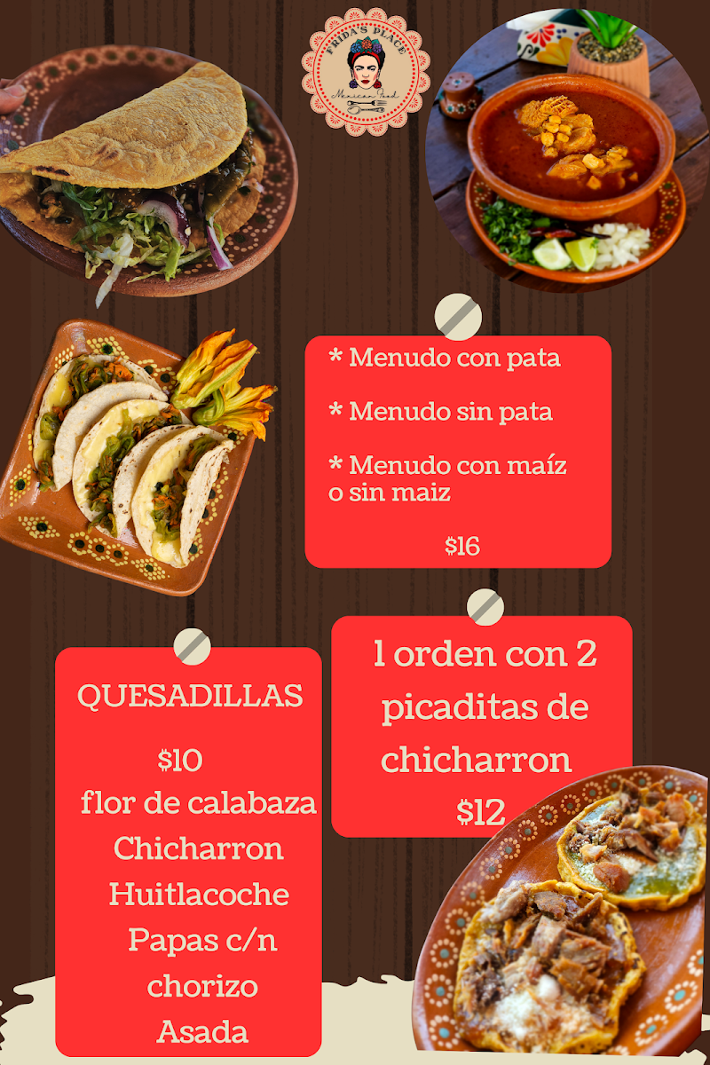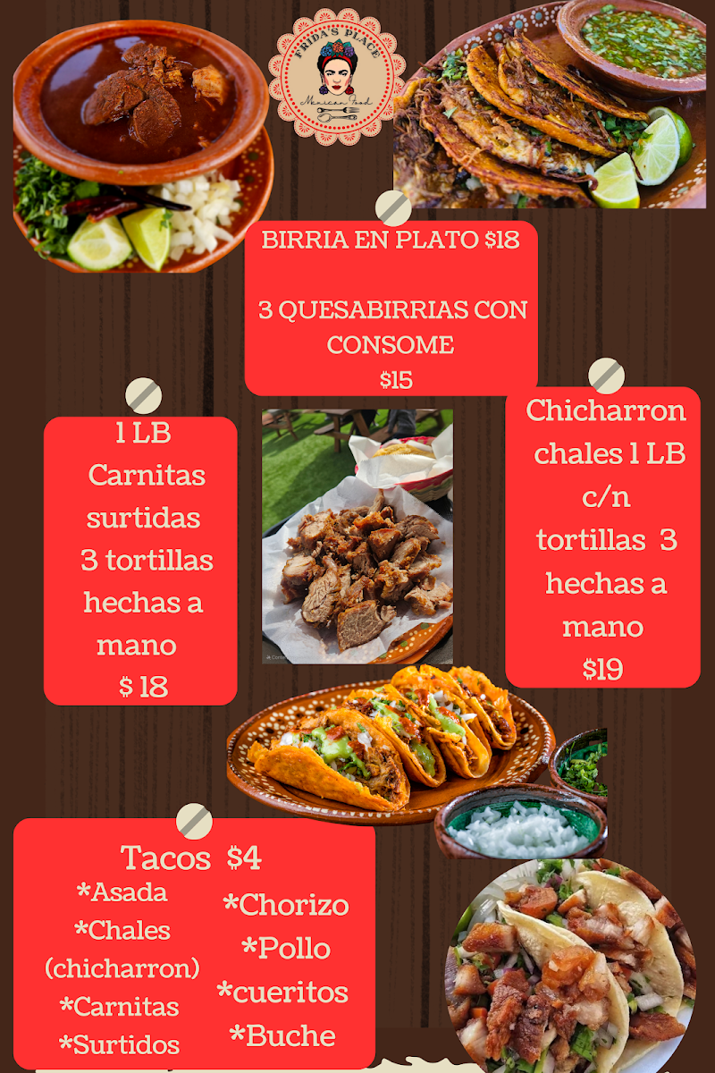 Welcome to Frida’s Place, a charming Mexican restaurant nestled in Perris, CA. Specializing in authentic flavors, Frida’s offers a menu that celebrates traditional Mexican cuisine. Start with the Enchiladas Michoacanas—three delectable cheese-filled enchiladas topped with onions and chicken for just $19.00. For a heartwarming dish, don’t miss the Pozole Rojo, where you can choose between pork or chicken, served with crispy taquitos at $20.00. And for enthusiasts of bold flavors, the Quesabirrias y Consome is a must-try, priced at $15.00, with perfectly crafted birria tacos accompanied by rich consome.